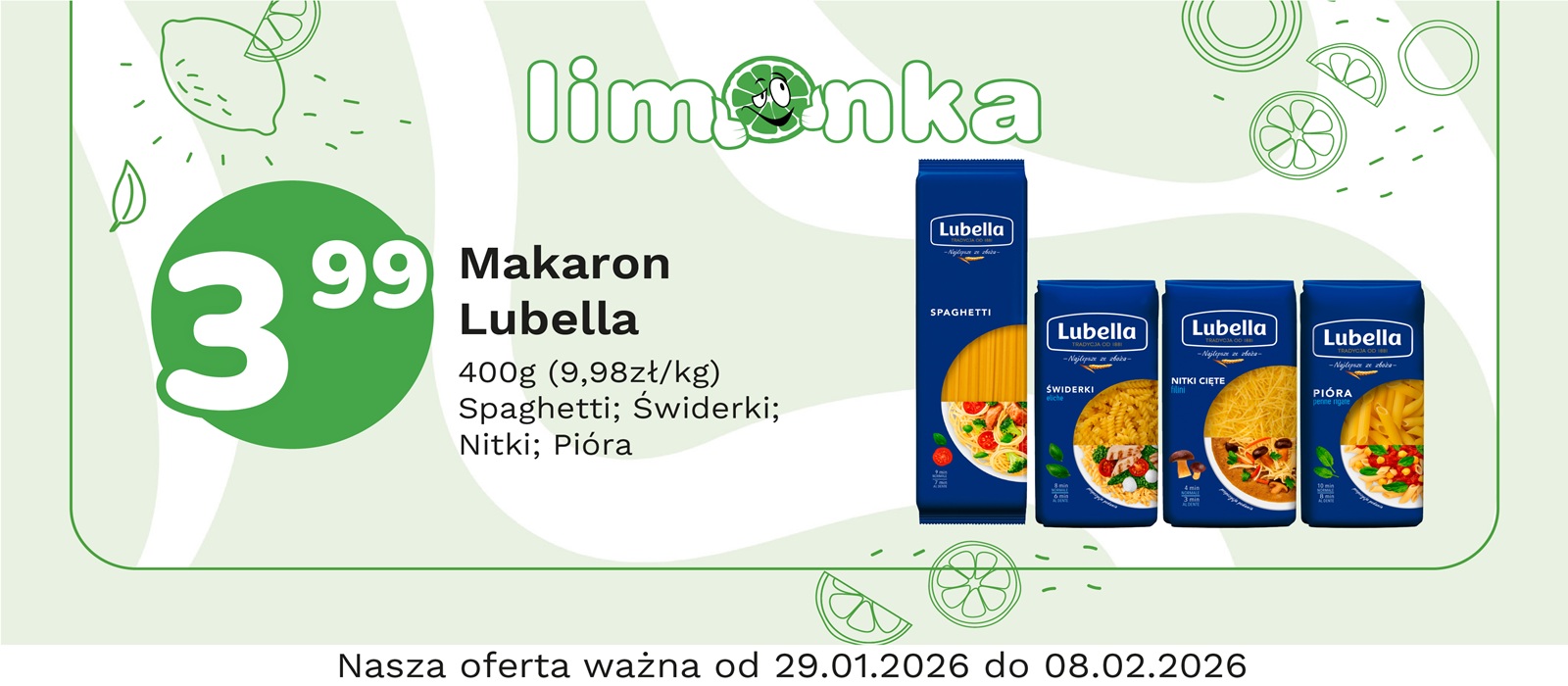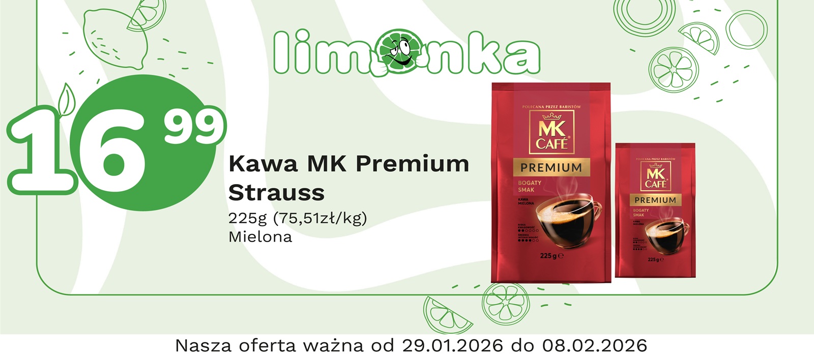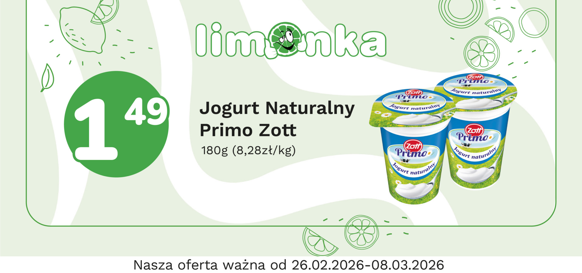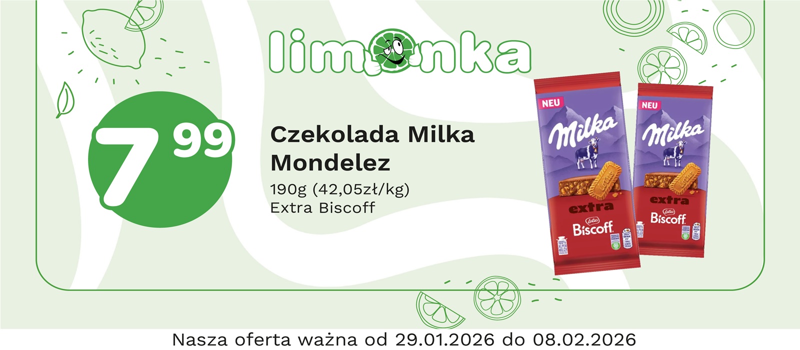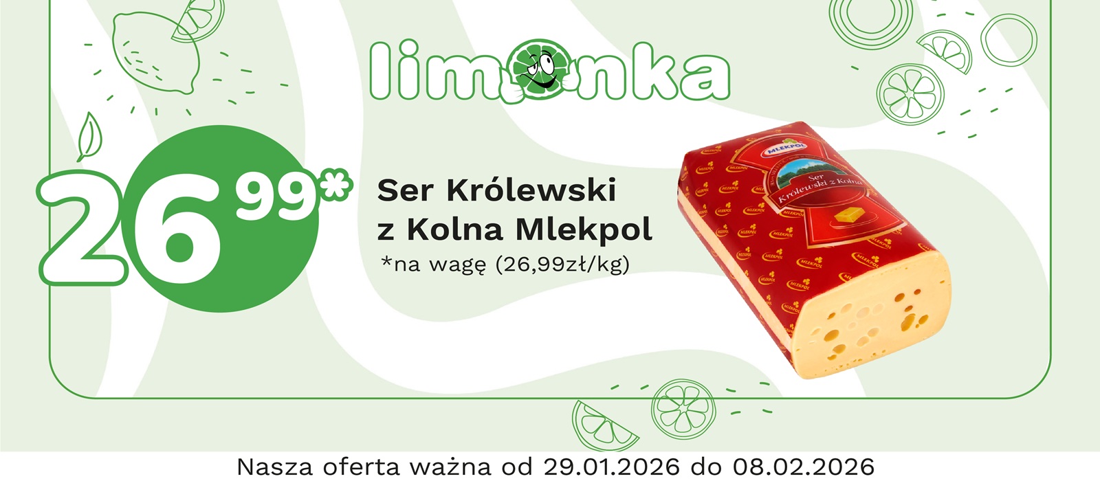 Limonka to w 100% polska sieć sklepów, prowadzona przez rodzimych przedsiębiorców. Oferujemy szeroki wybór świeżych produktów w atrakcyjnych cenach, dbając o ich najwyższą jakość. To miejsce, w którym codzienne zakupy stają się przyjemnością! Nasze sklepy są zawsze blisko Ciebie, oferując to, czego potrzebujesz na co dzień – korzystne ceny i różnorodny asortyment. Robiąc zakupy w Limonce, wybierasz komfort i pewność, że znajdziesz produkty idealne dla siebie i swoich bliskich.