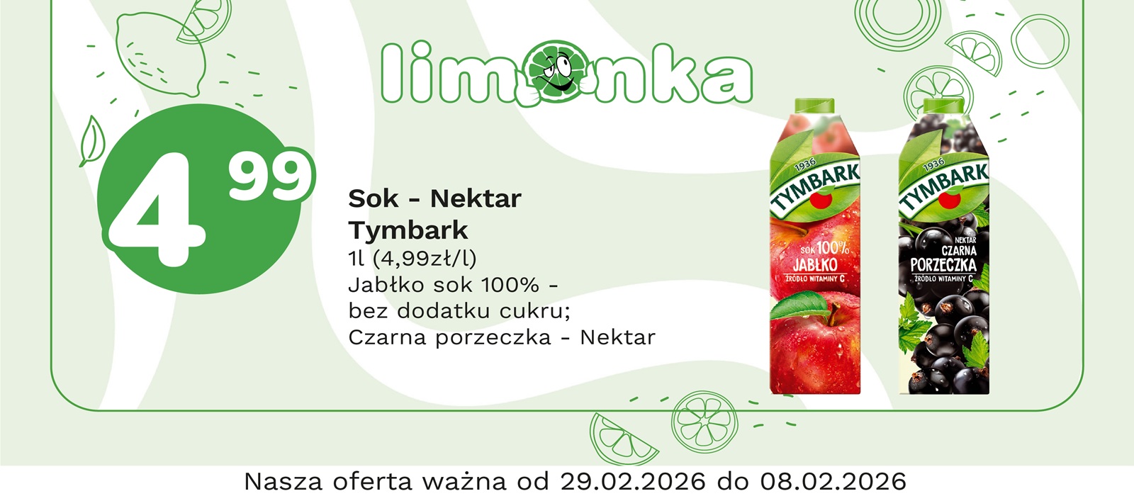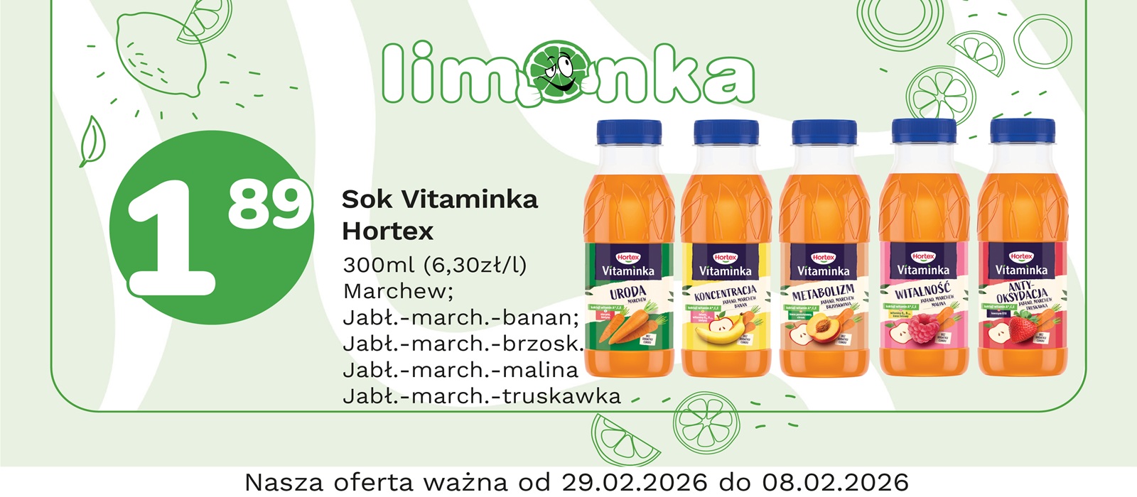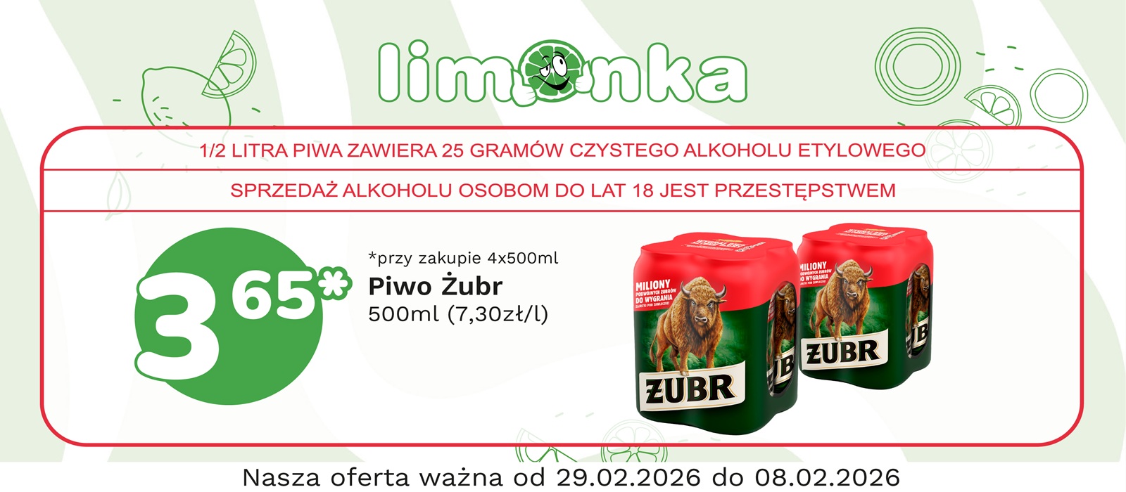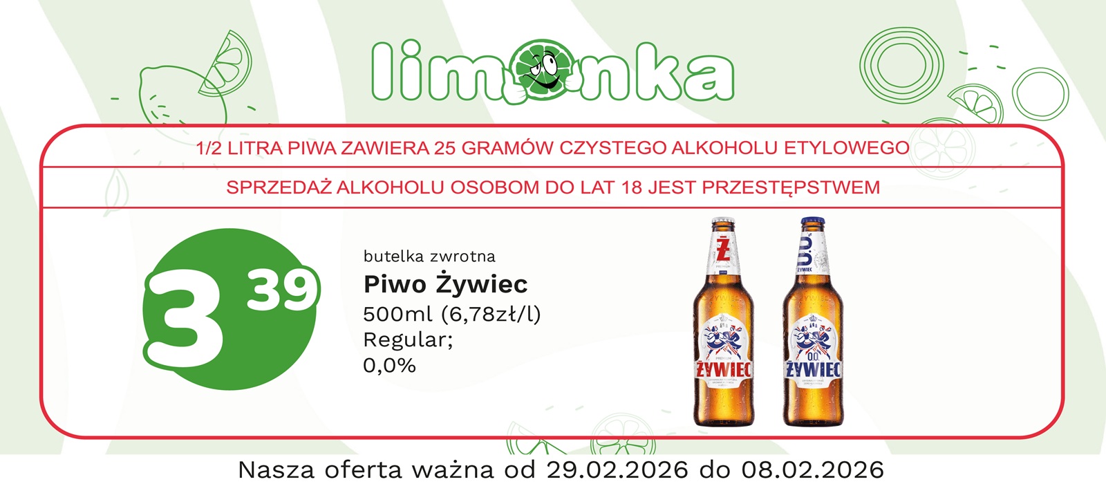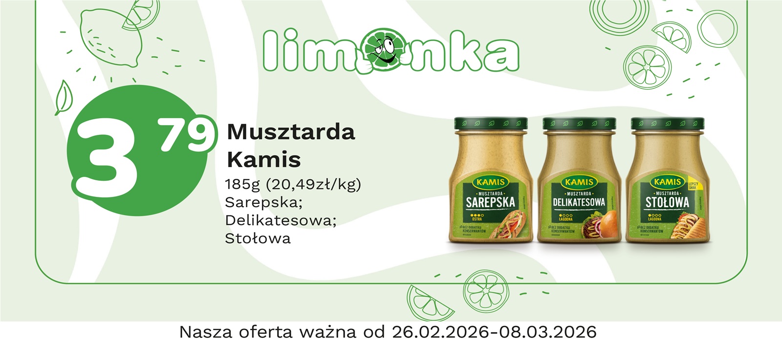 Limonka to w 100% polska sieć sklepów, prowadzona przez rodzimych przedsiębiorców. Oferujemy szeroki wybór świeżych produktów w atrakcyjnych cenach, dbając o ich najwyższą jakość. To miejsce, w którym codzienne zakupy stają się przyjemnością! Nasze sklepy są zawsze blisko Ciebie, oferując to, czego potrzebujesz na co dzień – korzystne ceny i różnorodny asortyment. Robiąc zakupy w Limonce, wybierasz komfort i pewność, że znajdziesz produkty idealne dla siebie i swoich bliskich.