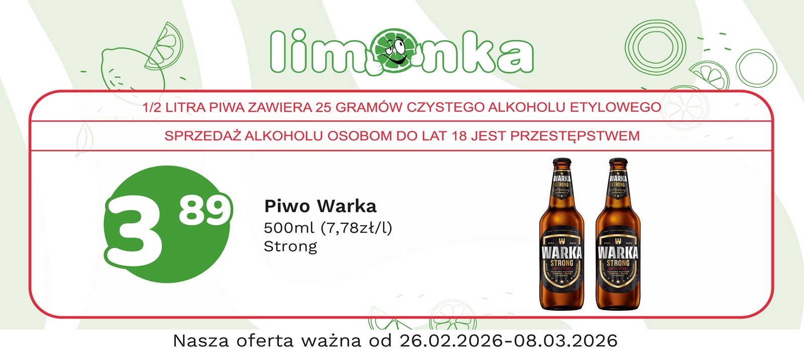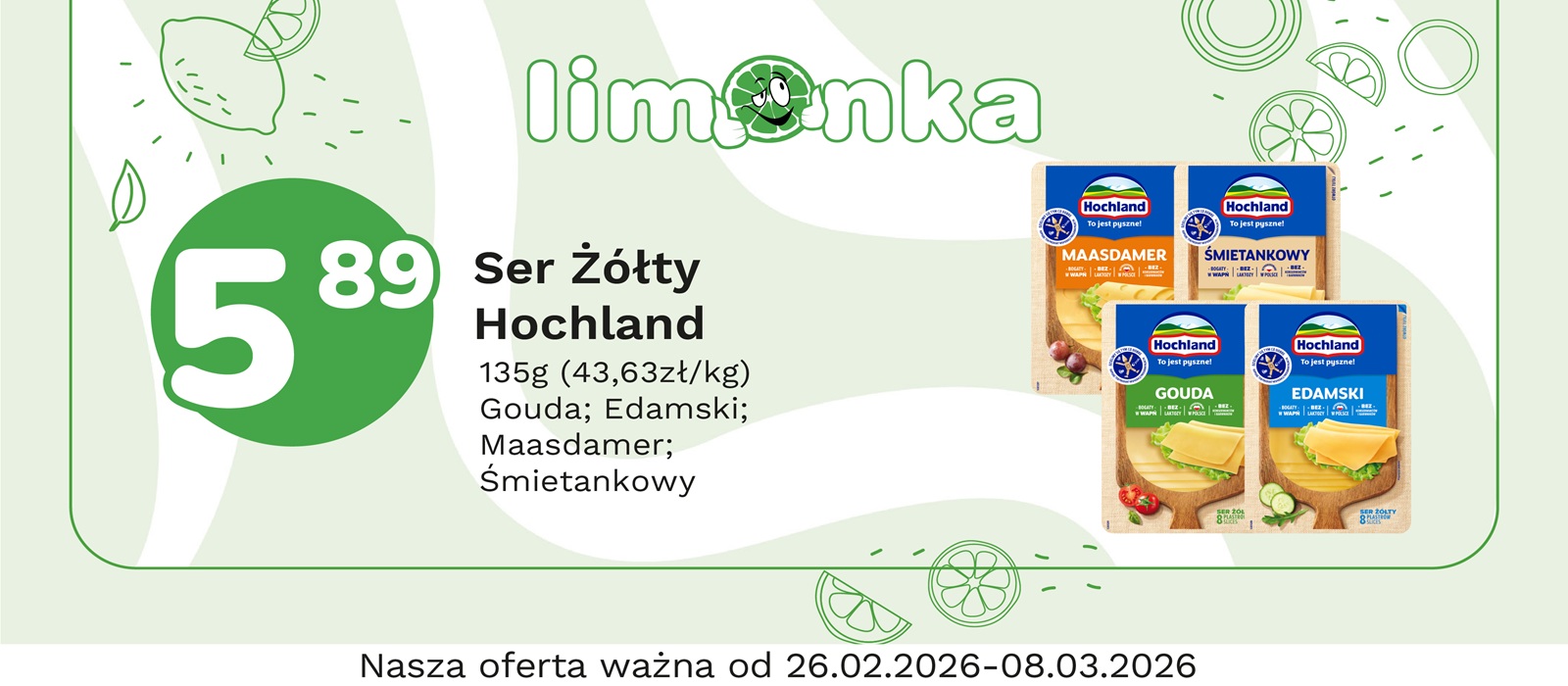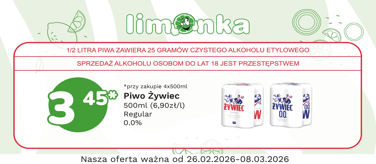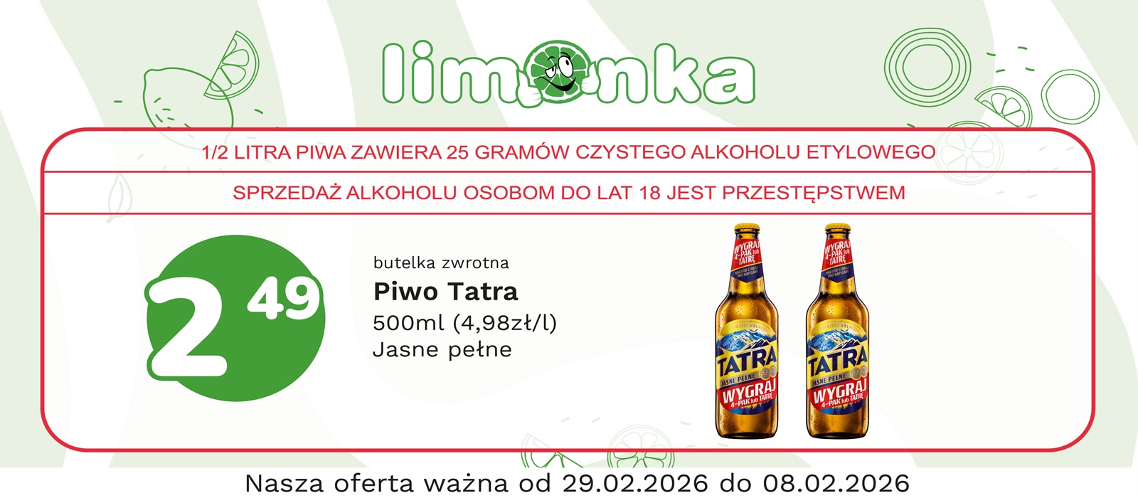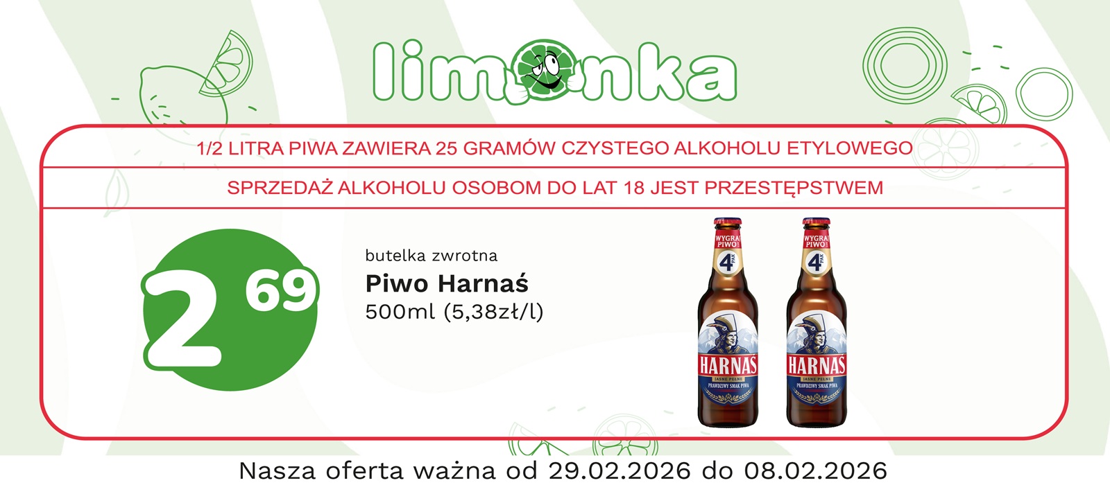 Limonka to w 100% polska sieć sklepów, prowadzona przez rodzimych przedsiębiorców. Oferujemy szeroki wybór świeżych produktów w atrakcyjnych cenach, dbając o ich najwyższą jakość. To miejsce, w którym codzienne zakupy stają się przyjemnością! Nasze sklepy są zawsze blisko Ciebie, oferując to, czego potrzebujesz na co dzień – korzystne ceny i różnorodny asortyment. Robiąc zakupy w Limonce, wybierasz komfort i pewność, że znajdziesz produkty idealne dla siebie i swoich bliskich.